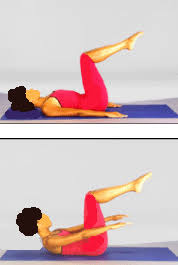 Recostado de espaldas debe elevar las piernas flexionadas llevándolas hacia el tronco, procurando que la columna no se despegue del piso. Luego elevar el torso para, de este modo, contraer tanto abdominales superiores como inferiores, mientras las piernas continúan flexionadas y los pies se encuentran en línea recta. En esta posición de contracción se mueven los brazos hacia arriba y hacia abajo mientras se realizan 5 inhalaciones primero y 5 exhalaciones después. El objetivo es completar cinco ciclos de respiraciones, luego relajarse y nuevamente repetirlo hasta realizar diez ciclos. Para aumentar la dificultad se puede realizar el ejercicio con ambas piernas extendidas. Al finalizar bajar el torso y llevar las piernas flexionadas hacia el pecho.